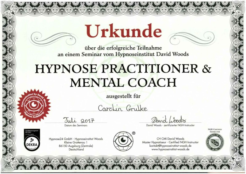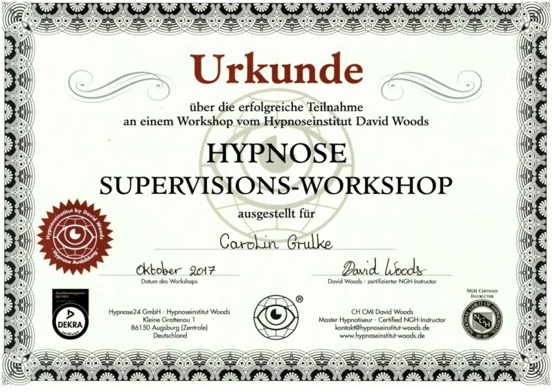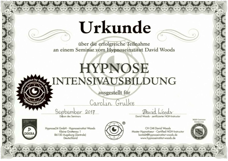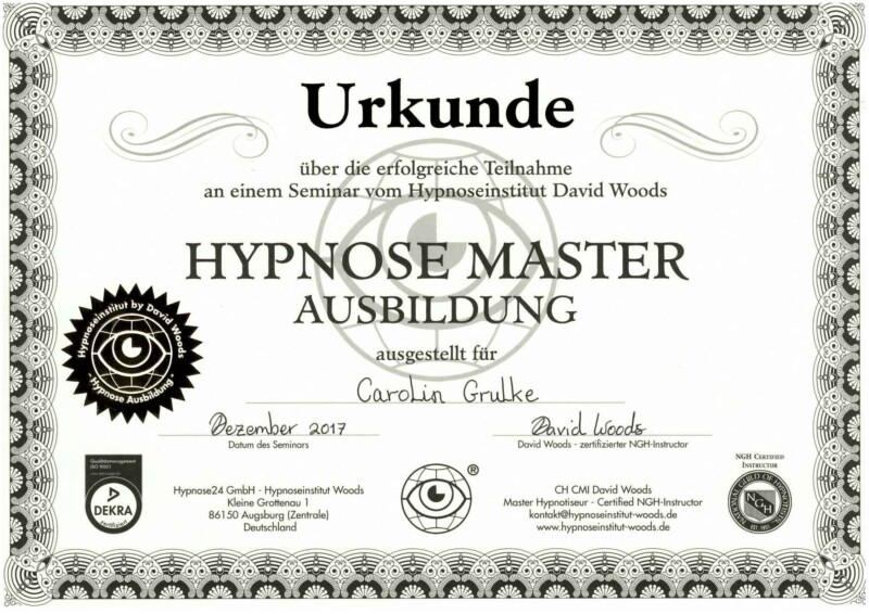 2017 – 2018 Ausbildung zum Hypnosepractitioner bei David Woods in Augsburg