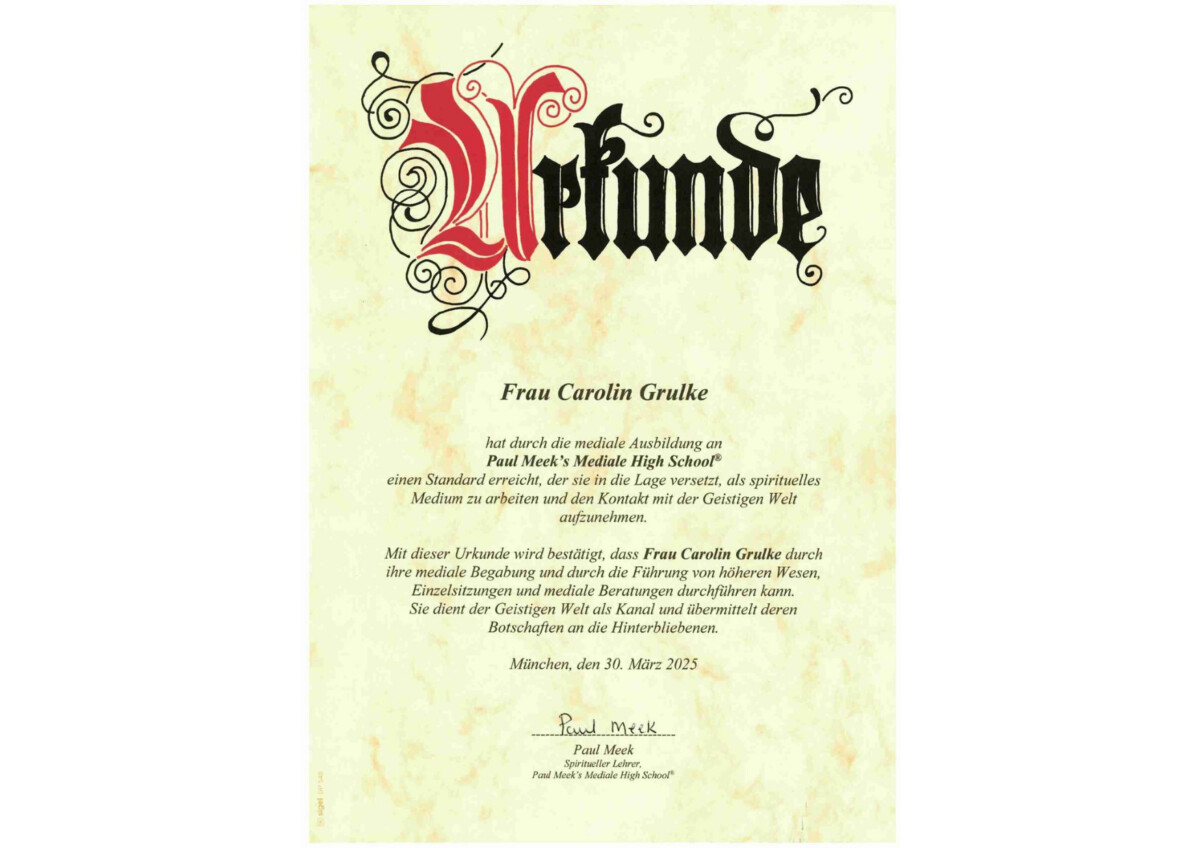 2022 – 2025 Ausbildung zum Medium bei Paul Meek